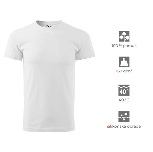 Basic muška majica kratkih rukava izrađena od 100% pamuka sa završnom silikonskom obradom.