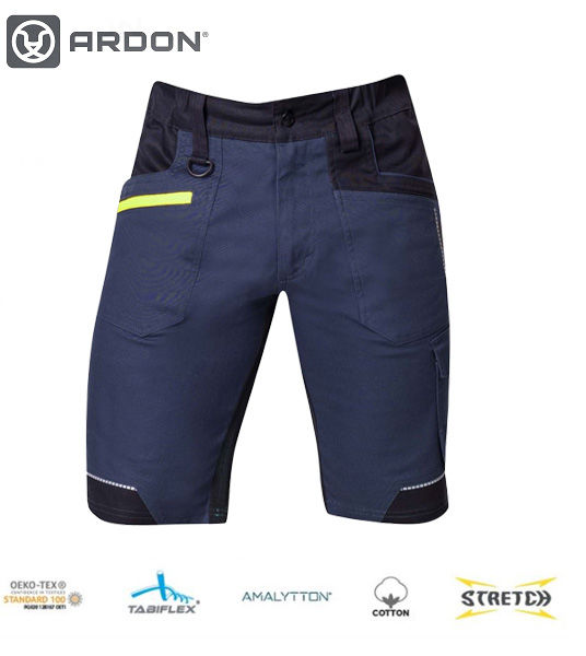 Rastezljive pamučne kratke radne hlače Ardon 4XSTRECH su vrhunske kvalitete i funkcionalnosti te su izrađene od četiri vrste materijala. Posebni materijal Amalytton® koji se koristi u većini dijelova hlača osigurava povećanu čvrstoću i izdržljivost pamučne tkanine. Izloženi dijelovi hlača izrađeni su od ekstra izdržljivog super elastičnog materijala Tabiflex®.
