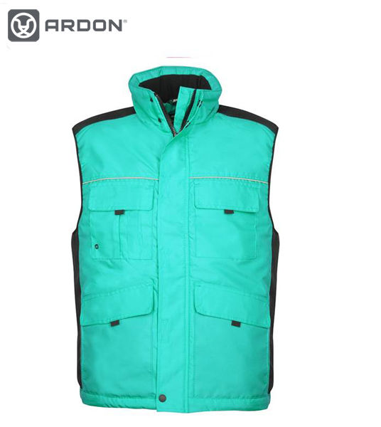 U području ramena prsluk je funkcionalno pojačan. Gornji dio prsluka je vodootporan, a unutranji dio sastoji se od izolacije od 100% poliestera i podstavom od tafta.