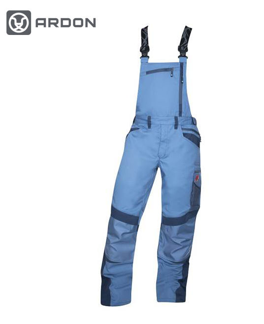 elastične naramenice za podešavanje duljine. Dvostruka tkanina na koljenima izrađena od CORDURA® materijala otpornog na habanje i trošenje. Reflektirajući elementi na prednjoj i stražnjoj strani za bolju uočljivost.