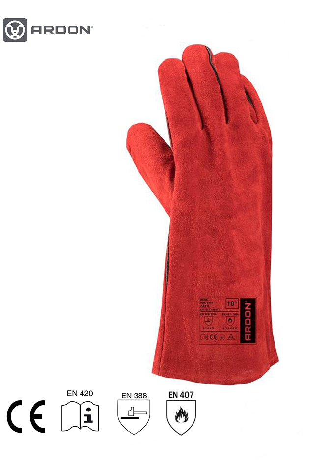 Rukavice za varenje ARDON RENE napravljene su od visokokvalitetne goveđe kože, koja pruža izdržljivost i otpornost na mehanička oštećenja. REukavice imaju produženi dio iznad ručnog zgloba koji štiti veću površinu ruke. Također, praktičan kroj izrade omogućuje jednostavno navlačenje rukavice i ne ograničava kretanje prstiju.