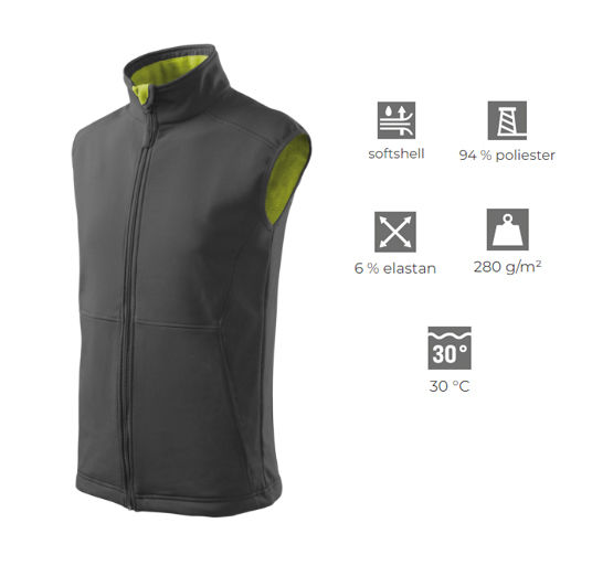 Vision softshell prsluk muški izrađen je od dvoslojnog softshell materijala.