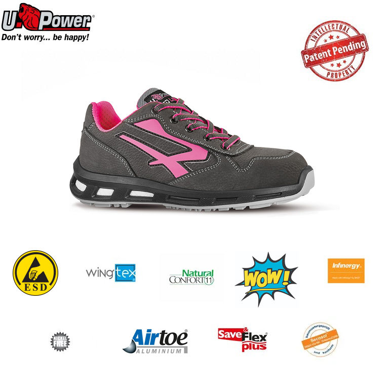 Zaštitne ženske niske cipele CANDY, lagane i udobne iz Upower asortimana Red Lion, s gornjištem od prirodne nubuk kože, aluminijskom kapicom za prste, te ESD odobrena.
