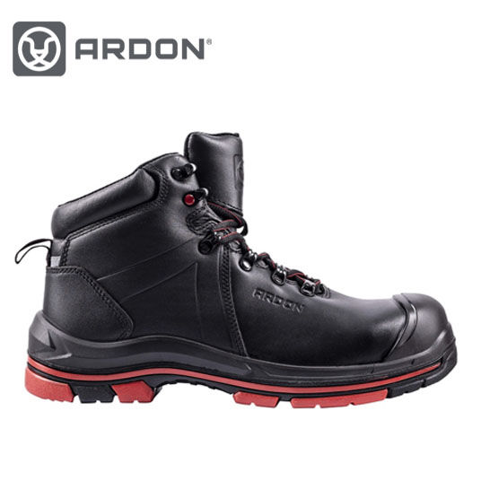 Visoka zaštitna cipela s gornjim dijelom od visokokvalitetne pune kože s kompozitnom zaštitnom karticom i zaštitnim uloškom od kevlara.